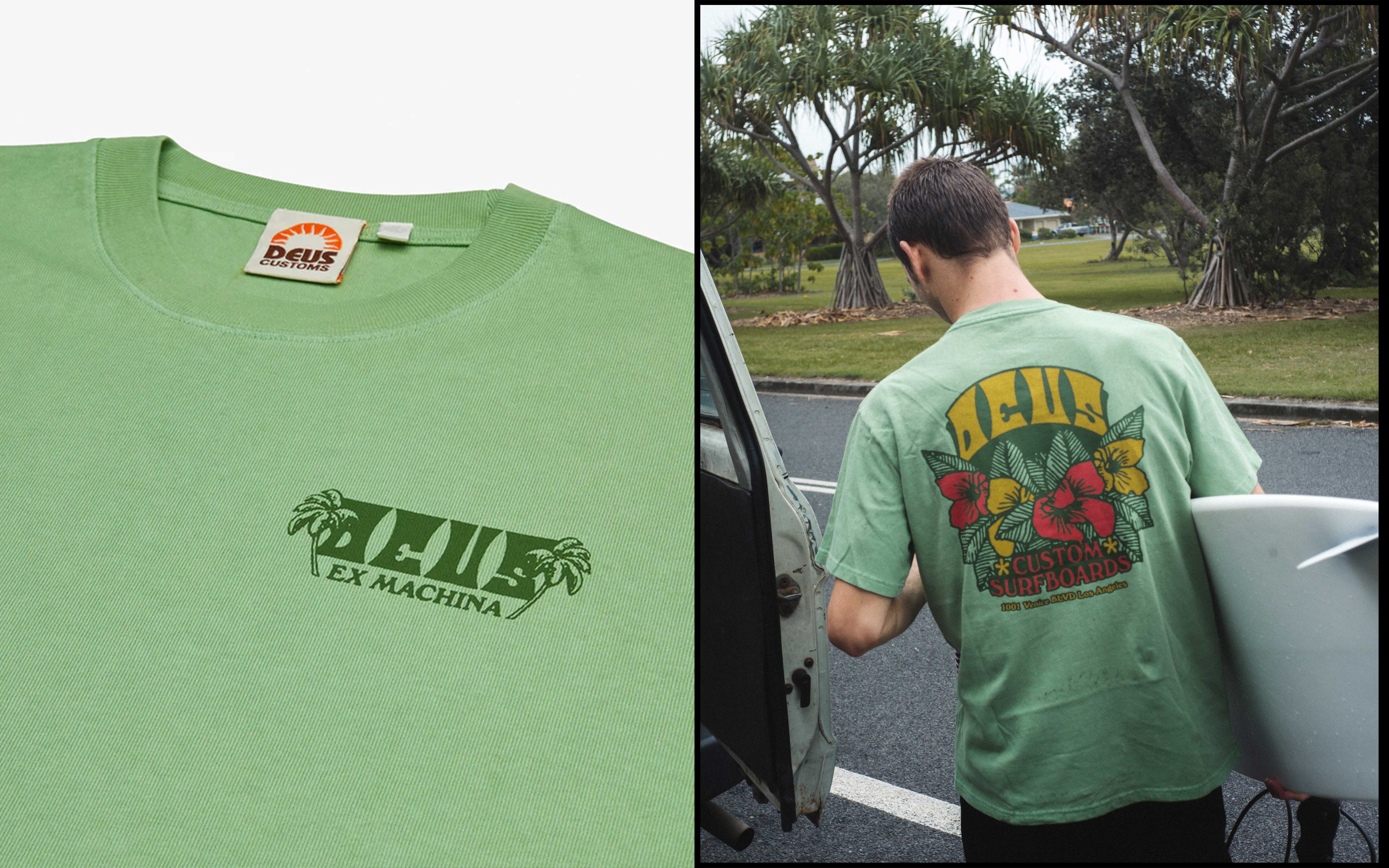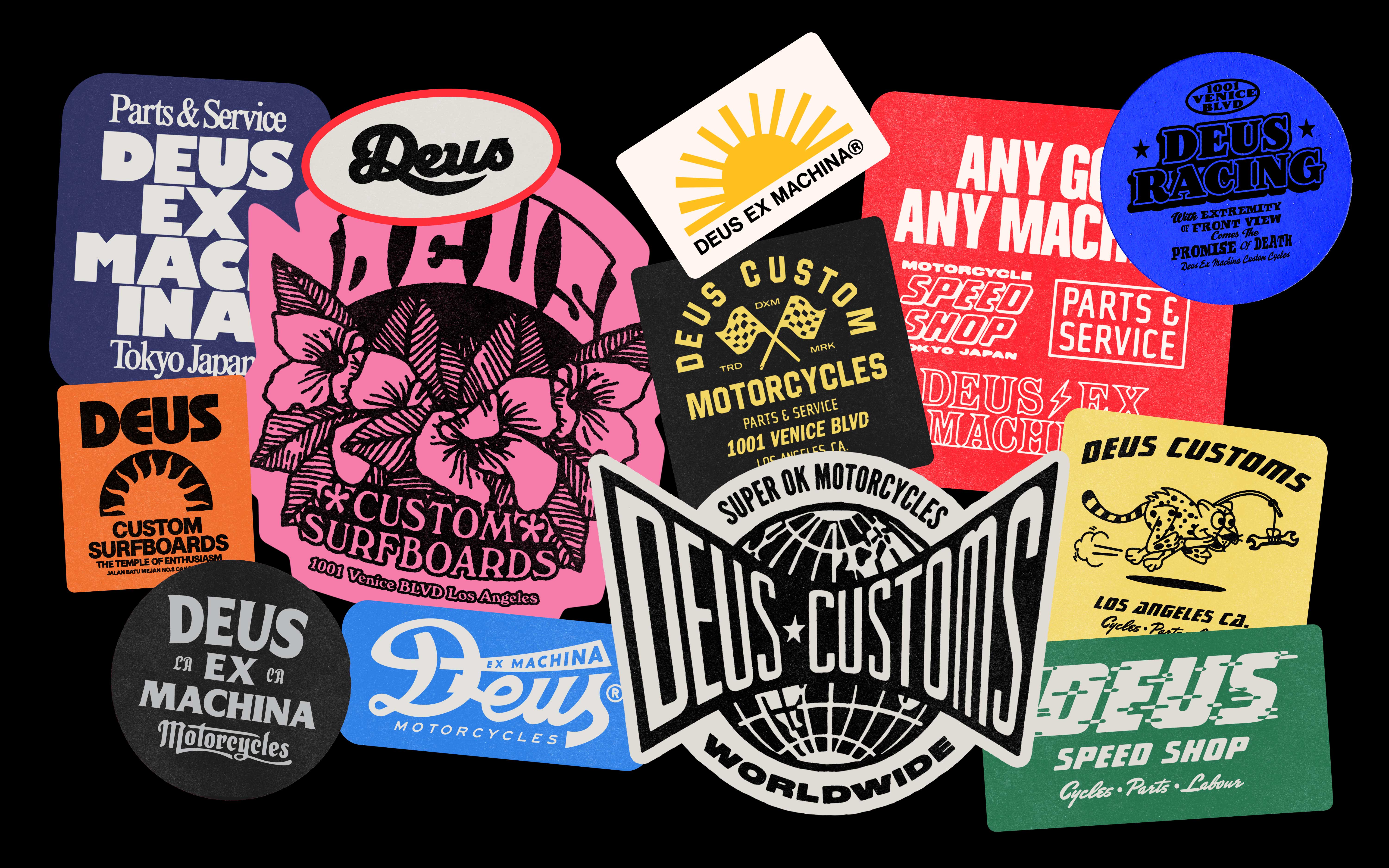 A selection of graphics exploring type and illustration for both Deus’ surf and moto apparel.